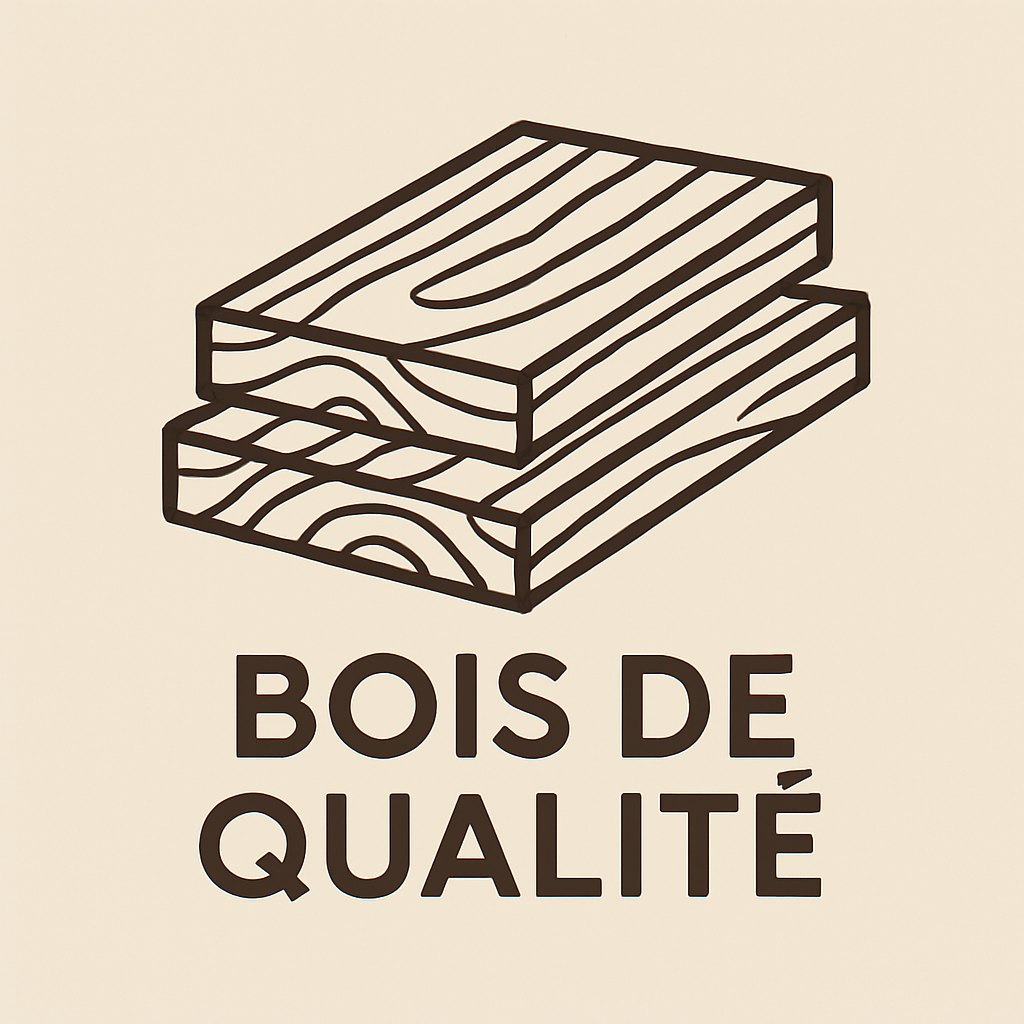 Nos réalisations sont conçues à partir de bois massif de qualité, sélectionné pour sa solidité et sa longévité. Nous n’utilisons ni contreplaqué, ni bois composite ou bois reconstitué, ni de bois d’importation à bas coût. Cette exigence garantit une qualité artisanale et une résistance incomparable.