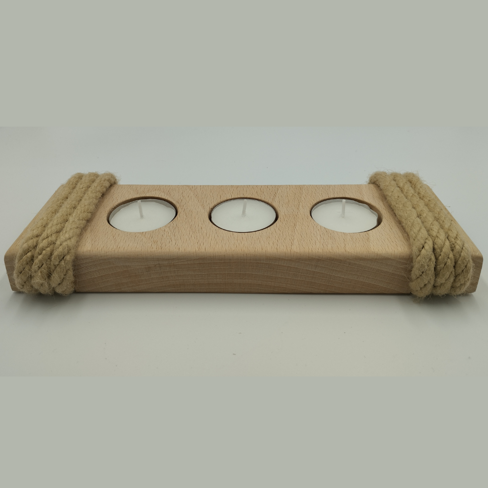 Apportez une touche chaleureuse et authentique à votre intérieur avec ce bougeoir triple en bois naturel.