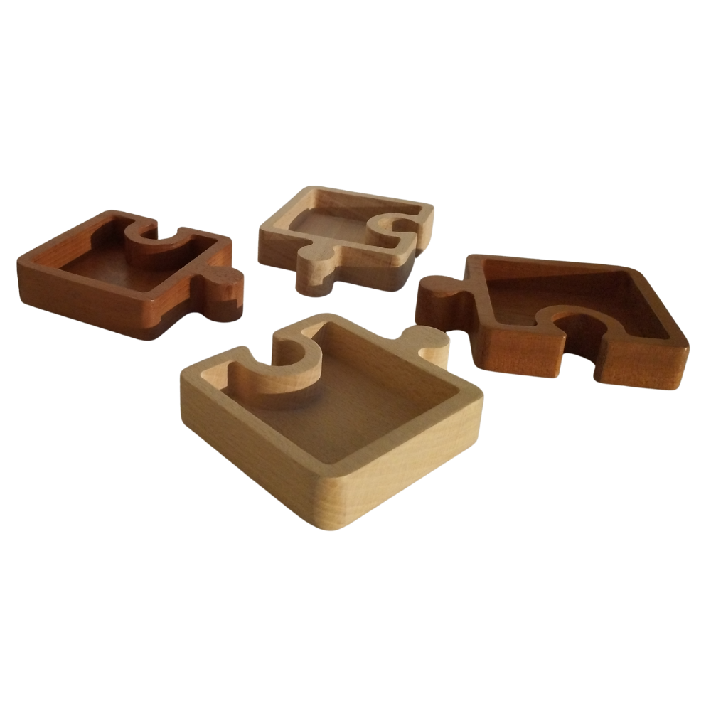 Apportez une touche ludique et élégante à votre intérieur avec ce set de compartiments en forme de puzzle, entièrement fabriqué en bois massif