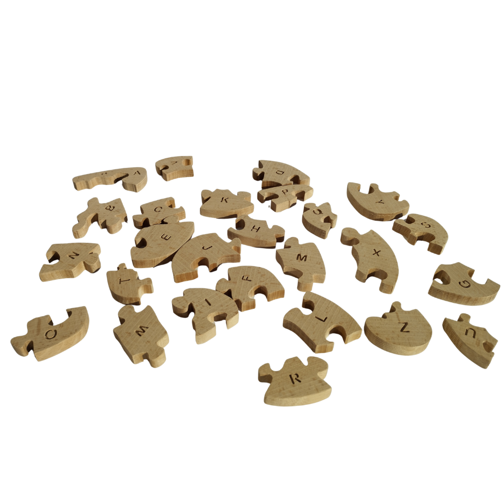 Apprendre de façon ludique l’alphabet avec ce puzzle de 26 pièces en bois de hêtre